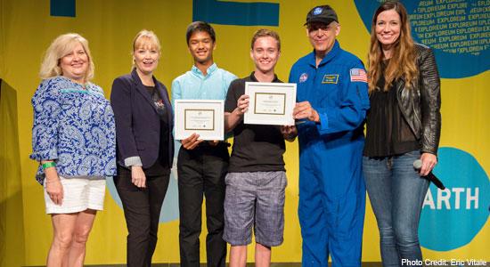 And the winners of the Star Trek Replicator Challenge are Kyle Corrette from Phoenix, AZ, of the Teen Group, and Sreyash Sola from Ashburn, VA, of the Junior Group. They were chosen by a panel of expert judges for their Melanized Fungarium and Astro Martian Mini Farm entries, respectively.