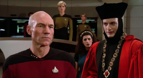 The Farpoint station and the whole story about running into Q and Q's putting us on trial, those two stories, they were written at different times, but they had been well melded together by the time we were shooting. That was not a problem at all, as I recall. Things like the cast and the costumes and the sets had been finished. The music was wonderful, and as far as the visual effects, in those days we were using, I think, 100% models and we were not able, budgetarily, to compete with some of the big science-fiction feature films of recent years at that point. So, I think we were a little bit nervous whether people were going to buy the visual effects, but they certainly were of a higher quality than The Original Series simply because of the technology that had developed over the years.