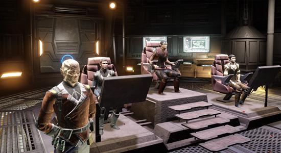 This starship features a Lieutenant Commander Universal/Intelligence Specialist Bridge Officer seat and a Lieutenant Tactical/Pilot Specialist Bridge Officer seat.