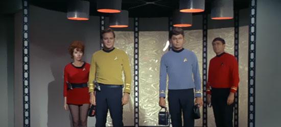 7. Khan, when he makes his move against the Enterprise, first beams to the Botany Bay with Marla’s help to pick up his crew. In the episode as edited and aired, the Tenutos note, "Khan greets his people on the Botany Bay, and the next sequence occurs on the bridge as the episode shows the effects of Khan taking over ship systems. In the filmed episode, we would have seen Khan and his people actually returning to the Enterprise in the transporter room. We never do see that, but luckily there is a photograph of this moment preserved on a Lincoln Enterprise slide fans could purchase during the 1970s."