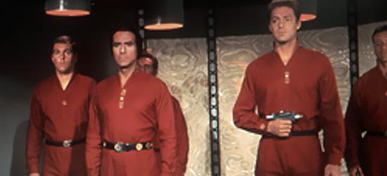 6. "William Ware Theiss’ costume design work on 'Space Seed' is remarkable for its iconic nature and its interesting symbolism," the Tenutos wrote on in a StarTrek.com guest blog. "Even with limited time, the costumes of 'Space Seed' say something symbolic. Khan, for example, changes his outfit five times. Two are reuses of previously designed costumes (Gary Mitchell’s blue medical costume and an engineering costume). As an interesting aside, Khan does seem to like wearing Starfleet regalia: he does so in "Space Seed," in The Wrath of Khan (wearing both the broken Starfleet insignia and Starfleet jacket) and in Star Trek Into Darkness (as John Harrison in the black Starfleet shirt).