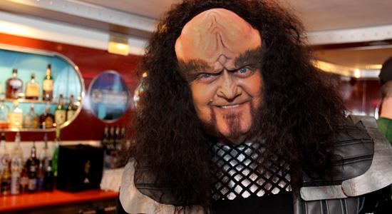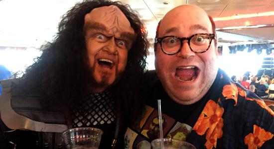 A definite highlight of Star Trek: The Cruise was the Klingon Pub Krawl with Chancellor Gowron, hosted by Jordan Hoffman. Robert O'Reilly went all out as Gowron, from wearing a full uniform to loudly krooning Klingon songs.
