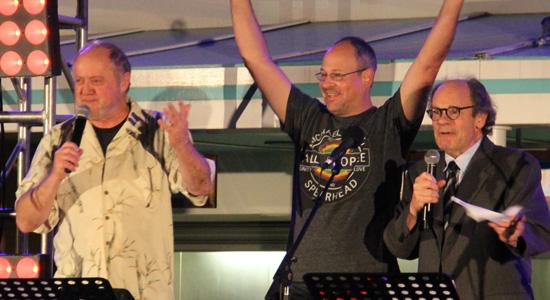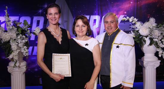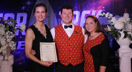 Trek After Twilight launched with the United Federation of Planets Intergalactic Gala & Awards Presentation, which was hosted by Casey Biggs and featured the Enterprise Blue Band (Biggs, Vaughn Armstrong, Steve Rankin and, for this night, Rankin’s wife, Susie Glaze). The poolside concert attracted tons of people in formal wear, Starfleet as well as normal, and the actors mingled and posed for photos with fans afterward.