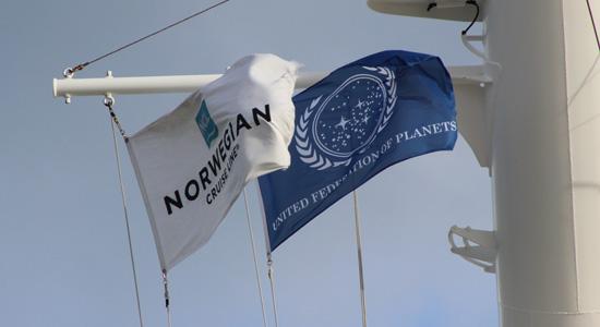 Check out the flag raised high in the air above the Pearl, er, Enterprise…
