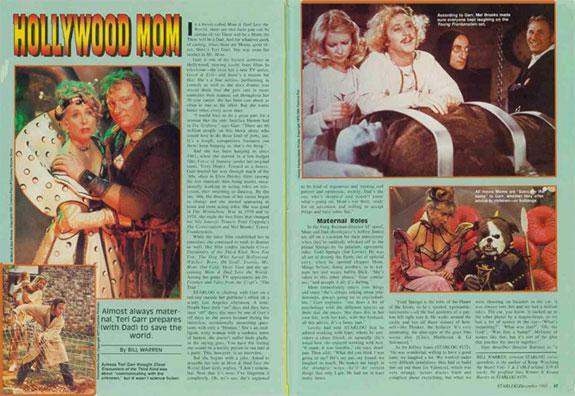 Apparently, Garr feared (correctly) that Starlog wanted to talk Trek and had to be persuaded to chat so as to promote her new flick. Warren sat down with her on the balcony of her publicist’s office for an in-person session and from there, things went sour. "I have nothing to say about it," Garr declared of "Assignment: Earth" in Starlog #173. "I did that years ago and I mostly deny I ever did it." Turns out she was glad the Gary Seven show didn’t go to series. "Thank God," Garr told Warren. "Otherwise, all I would get would be Star Trek questions for the rest of my natural life—and probably my unnatural life. You ever see those people who are Star Trek fans? The same people who go to swap meets."Well, there’s a quote that’s bound to not win friends and influence people—and that was my very thought as I initially edited Warren’s manuscript more than two decades ago (he had warned me the Garr conversation was akin to a bad date). I was flabbergasted that an actress I liked so much was so, well, amazingly hostile and negative about almost everything. This is why the Garr piece is one interview in a 30-year career that’s etched forever into my memory. Parts of it, verbatim.Warren changed tack and tried to steer Garr to somewhat safer harbors, her classic science fiction films Close Encounters and Young Frankenstein. "I don’t regard them as science fiction," Garr said. "I just consider them good movies." Oops! Did she just insult the rest of our readership?What can you do? Just move on—to the next interview.