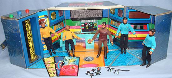 Don't even have to think about it. A 1970s Christmas. The Mego USS Enterprise Bridge playset. Finally, my Mego Captain Kirk had a vinyl-covered cardboard ship beneath his feet. That cool light-blue plastic Captain's Chair, the replaceable alien landscapes that would hang from the viewscreen, and best of all, the Transporter. Put a Mego figure in the booth, spin the knob up top, press the green button and with a satisfying "KA-THUNK!" -- vanished! Not exactly the height of 1970s technology, but to my five-year-old eyes? Sheer magic.