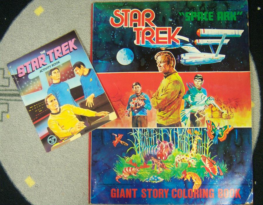Some of the earliest kinds of Star Trek merchandise available were coloring books, providing young fans (and creative adults) with the chance to express themselves while following adventures of favorite characters. Interestingly, following the publication history of the coloring books reveals the timeline, also, of the return to the mainstream that Star Trek experienced after its cancellation. The coloring books tended to get published whenever Trek’s star was on the rise.
