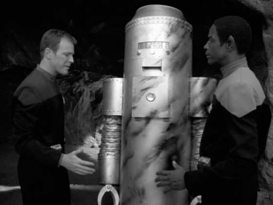 Inside joke lovers surely smiled when Harry commented on how familiar the Planet X set seemed to him. That, of course, was a reference to the franchise's many recycled locations and also the infamous Planet Hell stage at Paramount, which all the shows utilized to create their assorted alien worlds, often too obviously.