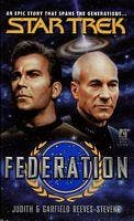 Federation, by Judith & Garfield Reeves-Stevens – November 1994 – Released just as Star Trek Generationswas getting set to hit movie screens, this is the other crossover between Kirk and Picard, though it happens in much less direct fashion here. Parallel storylines involving both captains and their respective Starship Enterprise unfold alongside a third narrative focusing on Zefram Cochrane, the inventor of warp drive, and showing us how his life in the 21st Century was affected following his great discovery. Cochrane’s backstory would be defined “for real” a couple of years later with the release of Star Trek: First Contact, but that film’s different take on the character doesn’t diminish this story, which remains a fan favorite.