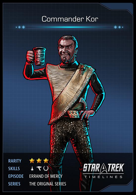 Commander KorSeries: The Original SeriesEpisode: "Errand of Mercy"Skills: Command, Security, DiplomacyMaximum Rarity: Three Stars