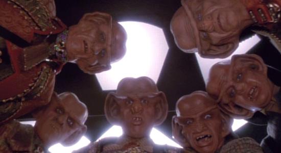 For reasons that are a little vague, the Grand Nagus dispatches Quark to rescue Ishka (Quark and Rom's mother, also the Nagus' lover) from the clutches of the Dominion. The first half of the episode shows our heroes “teaming up” in a manner similar to the film The Magnificent Seven. However, Ferengi, by and large, are not warriors, they are negotiators! Our Magnificent Ferengi fight back the way they know how – by using their noggins.