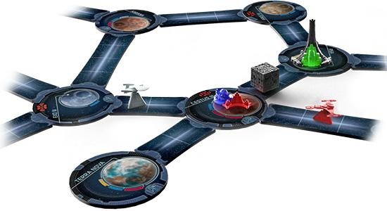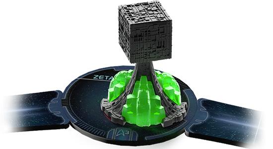 The Borg can imperil the game in two ways. Players will encounter the Borg while exploring the Galaxy; a ship may discover a Borg Cube when they explore a new system or they may discover an entire planet that has already been assimilated by the Borg and is the process of constructing a Borg Cube. Or players may start the game with the Borg invading the Alpha Quadrant by starting with the Transwarp Hub System in play. Each turn, a Borg Cube may emerge from the Transwarp Hub and attempt to assimilate players and neutral civilizations. Any System assimilated by the Borg will begin to build new Borg Cubes.