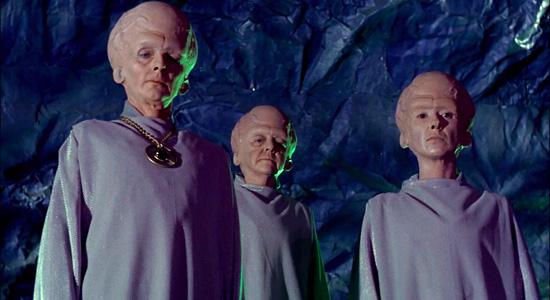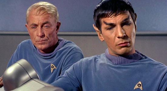 As Spock, Leonard Nimoy betrayed just a touch of emotion, smiling broadly in one scene, per the director's instructions. Nimoy had guest starred previously on Roddenberry’s series, The Lieutenant. He also, quite fascinatingly, shared the screen for a moment with William Shatner in “The Project Strigas Affair,” an episode of The Man from U.N.C.L.E. that aired on November 24, 1964.