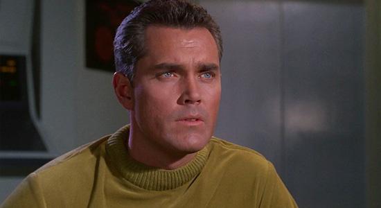 Majel Barrett played Number One, the ship’s second in command. The story goes that NBC, when they OK-ed a second pilot, compelled Roddenberry to pick either the pointy-eared alien or the female first officer; having both was out of the question. Barrett, who went on to marry Roddenberry, later portrayed Nurse Chapel and provided the voice of most of the computer systems heard throughout the Trek shows and movies. Barrett-Roddenberry passed away on December 18, 2008, not long after voicing the Enterprise computer one last time for Star Trek (2009).
