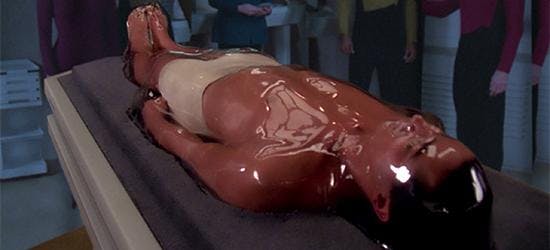 The Star Trek: The Next Generationepisode "Unnatural Selection" is a goldmine of weirdness and wonder — the progressive aging makeup on Diana Muldaur, a look at how Starfleet officers pay their respects to a ship they're about to scuttle, and the way nobody ever comes back to the fact that the Darwin scientists seemed to be trying to make their very own Khans — but let's try to narrow our scope to just the scientific implications, of which there are many as it turns out!