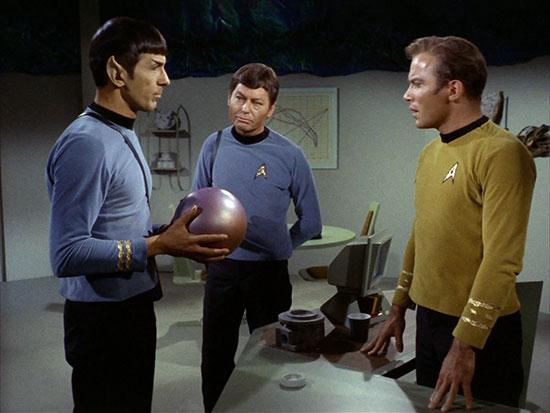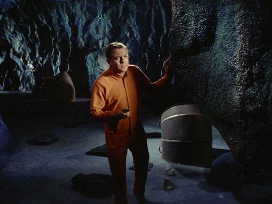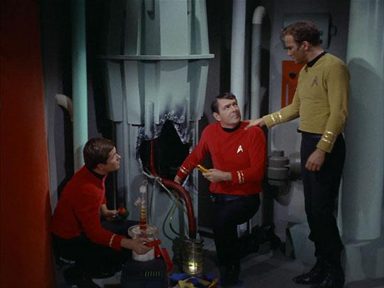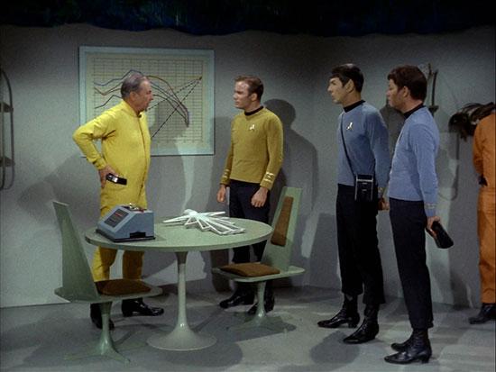 It is a unique opening because it is the only one of The Original Series episodes to not feature at least one member of the Enterprise crew. Originally, according to the story outline, the episode was to open with a teaser set on the Enterprise, in which Scotty informs Kirk that the ship is in serious danger. There is a faulty “varanium plug in the antimatter accelerator” that will explode and the ship has no replacement.