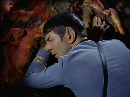 The biggest difference between the original story outline and the final episode is that Spock does not use a mind-meld to communicate with the Horta. Instead, Kirk and Spock both use a device called a "transicator." Spock’s telepathic abilities allows him to focus the transicator more effectively.