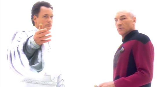 One of my favorite episodes of Star Trek: The Next Generation is “Tapestry.” This episode has everything I mentioned above. It has the erratic and often humorous behavior of Q, some ornery Nausicaans, romantic interests, great fights, wonderful character development and suspense. The opening scene sees the stalwart and stoic Captain Jean-Luc Picard die in sickbay resulting from a weapon’s blast. The artificial heart he received in his youth gave out and he could not be saved. The omnipotent Q visits Picard in what appears to be the afterlife and asks whether there is regret in the captain’s life. It’s a poignant inquisition, as the tormented voices of those who have died, either through the action or inaction of Picard throughout his life, echo in the background. Q offers Picard an opportunity to make peace with his “sordid” past. He can alter the past in order to avoid the violent encounter with the surly Nausicaans in his youth to keep his natural heart and thus save his future life.