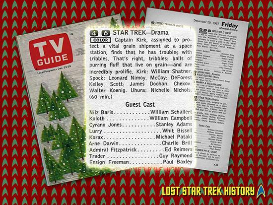 Unlike many other episodes of TOS, there wasn’t much publicity for “The Trouble With Tribbles” when it was released. For whatever reason, Desilu and the NBC network didn’t hire still photographers to take pictures of the guest stars — either the Tribbles or the actors playing the guest roles — and they didn’t send out any significant advance publicity information. Advertising appears to have been limited to the simple storyline released to the media by Desilu’s public relations company.