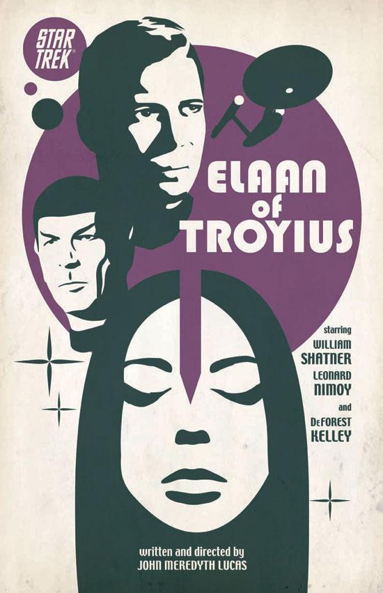 How did the piece evolve from initial concept to finished product?Ortiz: This one originally had more of a love-story feel to it with Shatner and the name of the actress that played Miramanee. But once again, due to legal issues, I had to leave her name off the poster.Which of the four would you want most in your own home?Ortiz: I would go with "Elaan of Troyius." Having watched it again during my research, I discovered what a great episode it actually is.