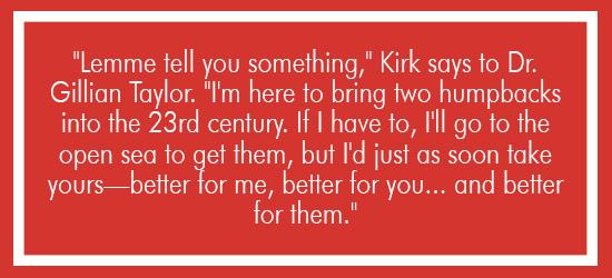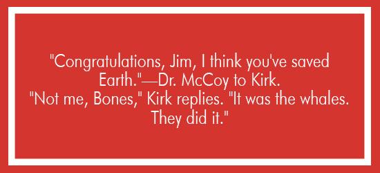 Happy Earth Day, everyone. To celebrate, StarTrek.com thought we'd take a look back at the most pro-environmental Star Trek outing of them all: Star Trek IV: The Voyage Home. In a nutshell, the plot boiled down to this: save the whales, save the world. Man, in the future, has driven humpback whales to extinction and now, ironically, it would take the lyrical whale calls of George and Grace in 1986 to save the future. And so, with some sci-fi magic—the slingshot effect (a/k/a light-speed breakaway factor—Kirk, Spock and the Enterprise crew arrived in San Francisco and embarked on a fun, often funny, thought-provoking trek into our (then-) contemporary world.