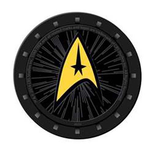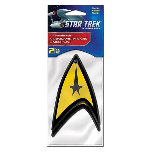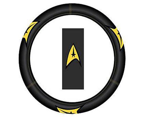 to pre-order.If you really, really love the Starfleet delta, the the Star Trek steering wheel cover is ideal. Designed to protect your hands from cold and hot extremes and featuring a comfortable, leather-like feel, it costs $14.99. Visit www.entertainmentearth.com to pre-oder.Next, there's a pair of air fresheners, one with the Vulcan greeting, the other with the Starfleet delta symbol. Each package costs $2.99 and features two fresheners. Visit www.entertainmentearth.com to pre-order the Starfleet delta symbol air