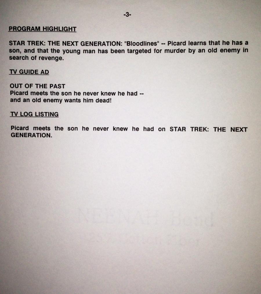 Trek Archive: Publicizing TNG's "Bloodlines"