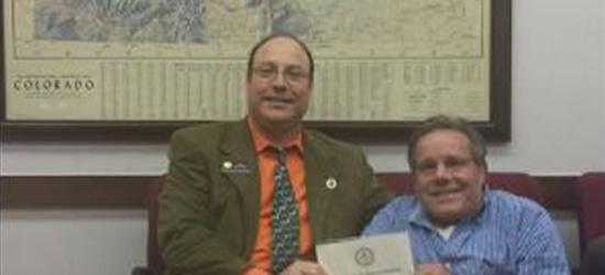 April of last year I was honored with a Certificate of Commendation by Colorado State Representative Paul Rosenthal for my contributions and work on the Official Star Trek Fan Club over the years. As many of you know, I founded the Official Star Trek Fan Club in 1980 and launched the Star Trek Communicator magazine shortly thereafter. I was awarded the Commendation at the Star Trek Legislative Caucus at the Colorado State Capitol—yes, you heard that right!—which was a stellar, bi-partisan success. This “Star Trek Caucus,” held at the historic Capitol building in downtown Denver, was a meeting of those who share an interest in the space industry and space exploration as well as those you have a passion for all things Trek. I shared the stage with representatives from Atmospheric & Space Technology Research Associates and the Space Foundation, who also received commendations.