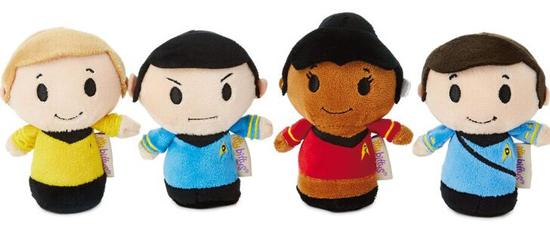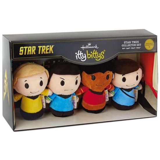HallmarkStar Trek itty bittys are on the way from Hallmark as part of their celebration of Trek’s 50th anniversary. The itty bittys Star Trek 50th Anniversary Set will feature plush fabric versions of Spock, McCoy, Kirk and Uhura, each measuring 3" W x 4" H x 2.25" D. Available now online and in stores, the set – which comes packaged in a collector’s box -- costs $29.95.