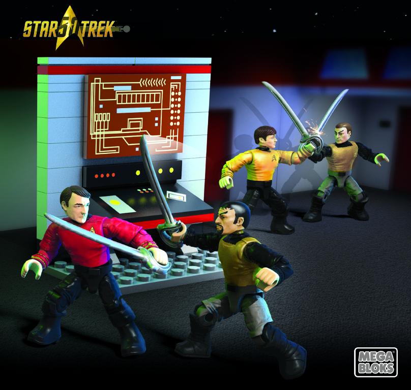 Mega Bloks/Mattel is represented at Toy Fair by their Star Trek Collector Construction Sets. Fans can check out the finely detailed U.S.S. Enterprise NCC-1701 Signature Series, the Klingon D7 Battlecruiser, an Away Team Figure Pack, the Classic Bridge, and a Transporter Room. The products will be available later this fall.