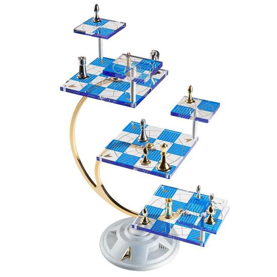 Wood Expressions – Tridimensional Chess SetWood Expressions, Inc., maker of WE Games brand of quality board games, will debut the first and only authorized re-creation of the Star Trek Tridimensional chess set. The collectible chess set, from the Franklin Mint, is based upon the one seen on board the starship U.S.S. Enterprise in the classic episode “Where No Man Has Gone Before.” It is on display at Toy Fair and will be available in the near future.