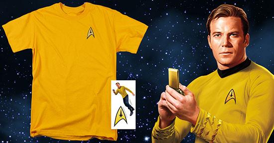 And then there's a yellow Star Trek Command Uniform with Liquid Gold Ink, and it comes with Kirk and command insignia stickers.