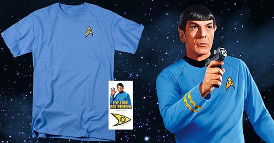 Finally, there is a Live Long and Prosper Bundle, which features a light blue T-Shirt with Spock on it and says, "Live Long and Prosper." It comes with Spock and Starfleet delta shield stickers.