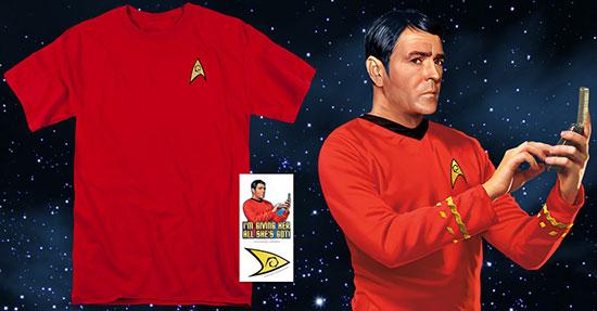 Trevco has just unveiled a quartet of Star Trek uniforms tee shirts that are available now on Amazon.com and come with exclusive stickers. All of the shirts are made of 100% cotton, have been pre-shrunk and can be purchased in sizes ranging from small to 5XL. First up is a red Star Trek Engineering Uniform Shirt with Liquid Gold Ink, and it comes with Scotty and engineering/security insignia stickers.