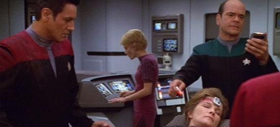 Memorable bit of dialogue #1:"Maybe," Janeway suggested to Chakotay, "I could stand with an apple on my head and you could phaser it off.""Sounds great," Chakotay replied. "If I miss, I get to be captain."