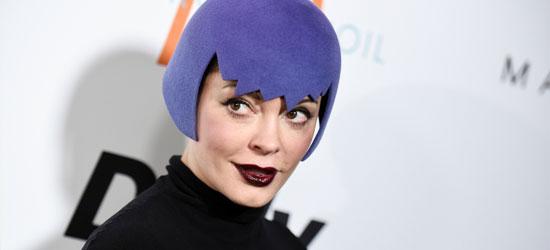 Logically, we had to do a story on this one. Rose McGowan, the always fashion-forward former star of Charmed, appeared at the Fashion Los Angeles Awards last week decked out in an all-black ensemble complemented by one particularly fascinating accessory, a bright purple felt cap in the shape of a jagged bob haircut.