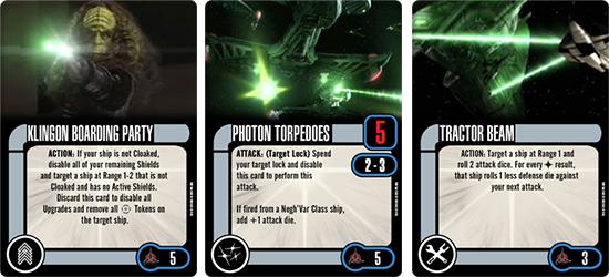 Klingon Boarding Party is the other Crew Upgrade in this Expansion Pack and can also be used as free Action as part of the I.K.S. Negh’Var’s special ability. As an Action target a ship at Range 1-2 that is not cloaked and has no Active Shields. You also must not be cloaked and need to disable all of your remaining Shields. Discard this card to disable all Upgrades and remove all Battle Stations Tokens on the target ship. As you would imagine, a Klingon Boarding Party is quite a frightening thing. Not only do you lose any tactical advantages granted to you by the presence of a Battle Stations token, all of your Upgrades are also disabled, leaving you vulnerable to be attacked. When used as a free Action on the I.K.S. Negh’Var, this ability truly shines allowing the Klingons to devastate their enemies.