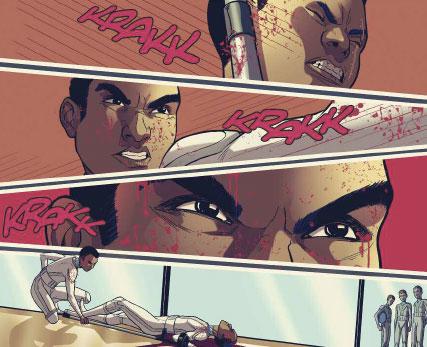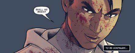 We don’t usually get so bloody in the STAR TREK comics, but one of our points of emphasis in this origin story is to show the savagery that Khan describes so memorably to Spock in STAR TREK INTO DARKNESS (… how can you be expected to break bone?”). From these first scenes of him as a boy it’s apparent that as much as Khan was “made” by the Augment program, there is something innately dangerous about him. When it comes to villains these days there’s often an explanation given for their barbarity that causes us to sympathize with them. But in Khan’s case – for all the noble grace he will exhibit later as an adult – there is something dark and threatening at his core.