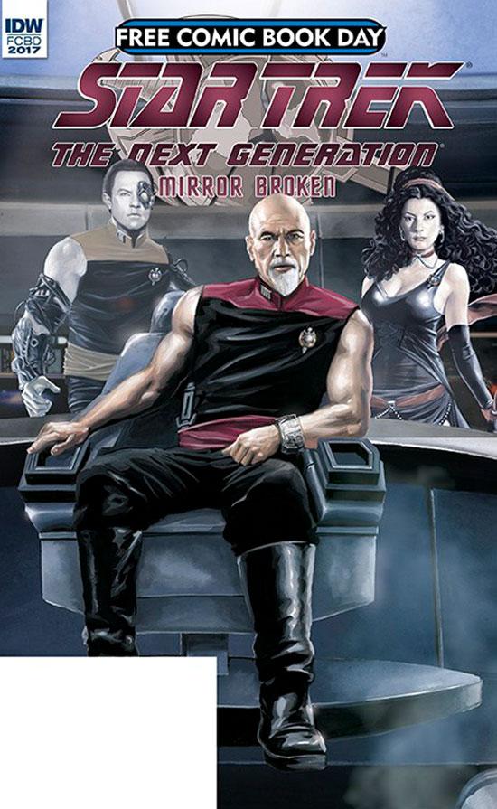 Circle the date: May 6, 2017. That'll be Free Comic Book Day, and IDW Publishing will offer up Star Trek: The Next Generation -- Mirror Broken as one of the 50 comics available. Have you seen the cover? We're talking Picard, all buff and goateed, in a sleeveless shirt, Data getting his Borg on and Troi clad in stretchy black. We're in. And, for free? We're really in.
